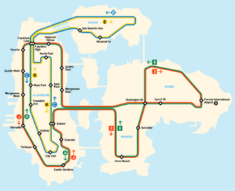The a j outer algonquin manhattan line connects over the algonquin bridge to queen where it becomes the 3 8 broker line. Gta4 subway transit map subway trains operate 24 hours 7 days. All of the subways in liberty city converge on two lines looping through algonquin manhattan. The orange colored line is red light saint mark s shuttle.