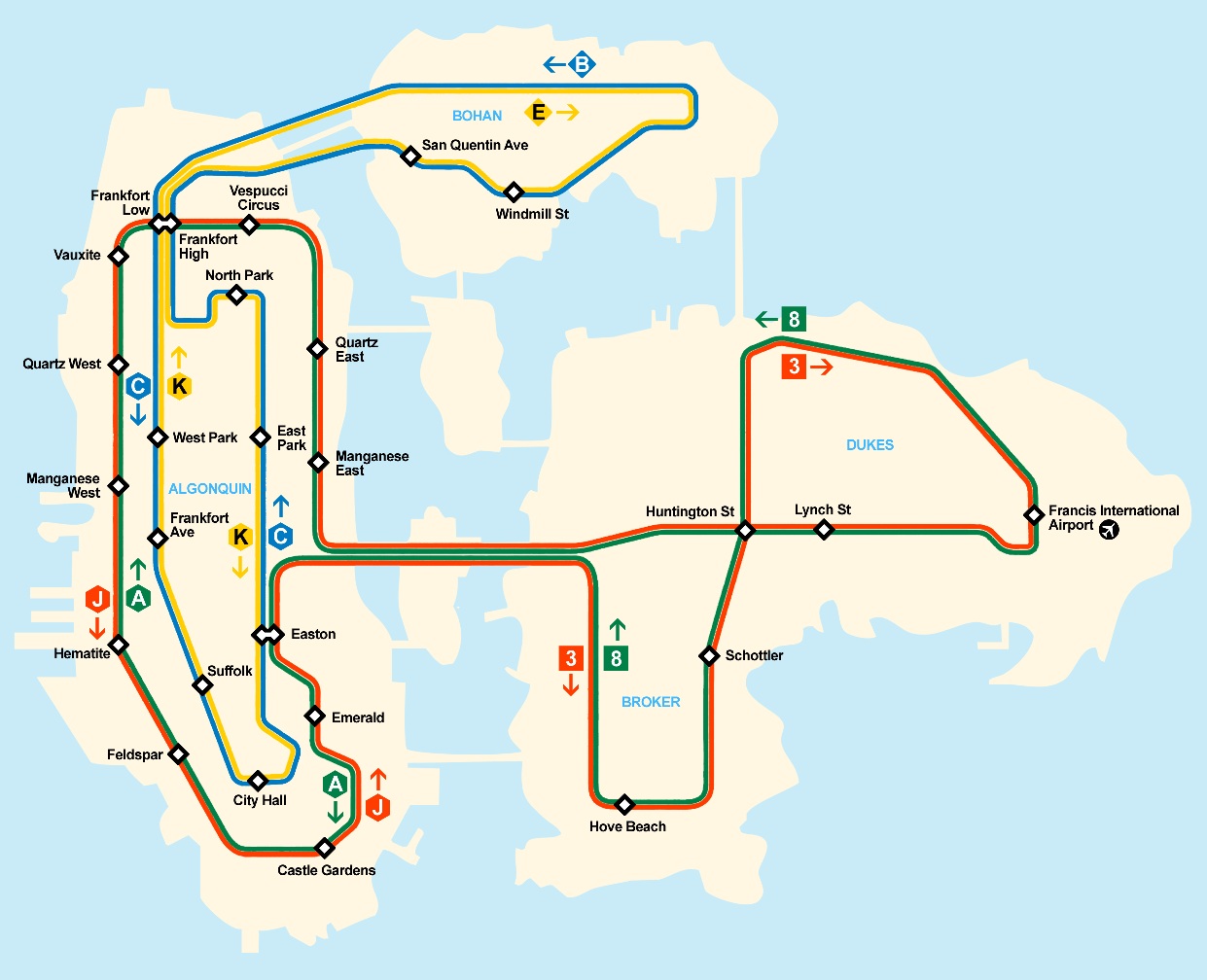 A route map of liberty city in gta iv depicting the subway system s extent in algonquin bohan dukes and broker. Aircraft 278 bikes 404 boats 62 cars 5291 helis 67 maps 423 mods 1245 other 81 savegames 44 skins 907 tools 41 trainers 22 trains 41 weapons 153 featured more. Home page news archive pages features about gta4 tv site map contact forums. The k c inner algonquin manhattan line connects to the b e bohan bronx line north of the frankfort high low 116 st stations.