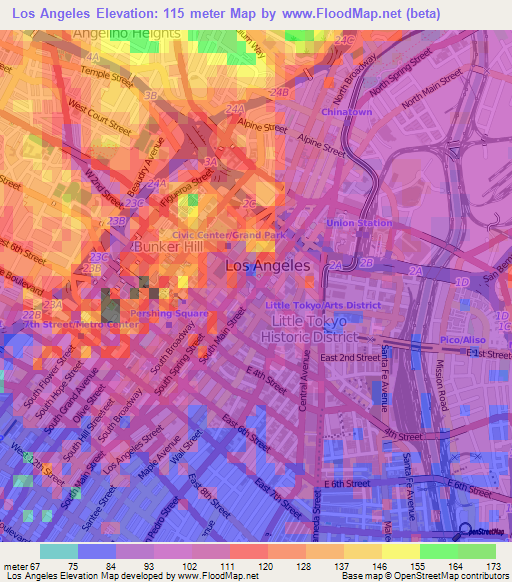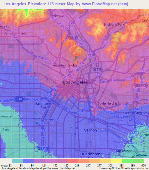 Elevation Of Los Angeles Us Elevation Map Topography Contour