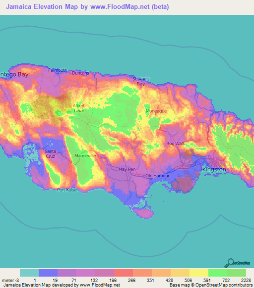 Jamaica Elevation And Elevation Maps Of Cities Topographic Map